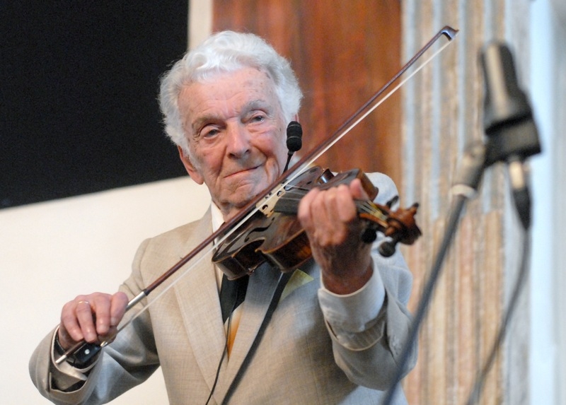 Alfred Schreyers repertoar är väldigt bred. Han spelar fiol och sjunger såväl jiddisch sånger som polska hits från åren 1920-30.